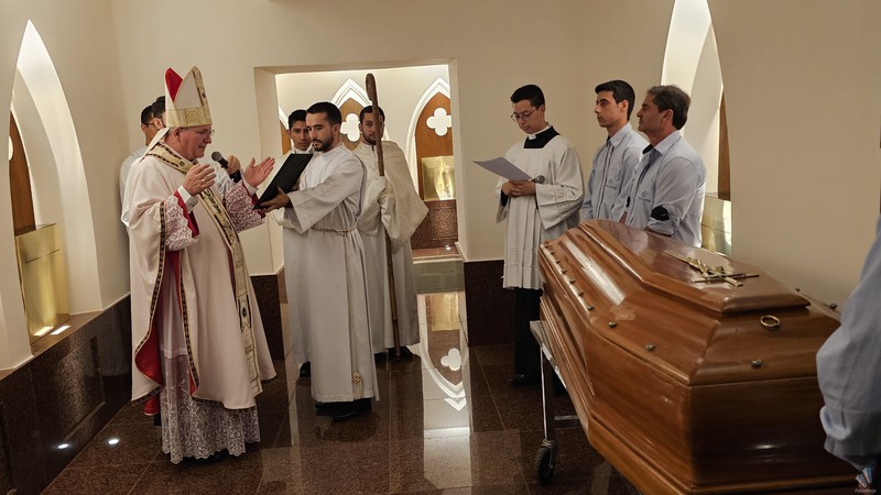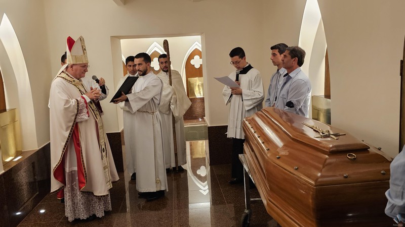 Após a missa, o cortejo desceu em procissão até a cripta, onde os restos mortais foram depositados. Logo em seguida, o bispo diocesano, Dom Claudio Nori Sturm procedeu a benção e inauguração oficial da restauração da Cripta Diocesana.