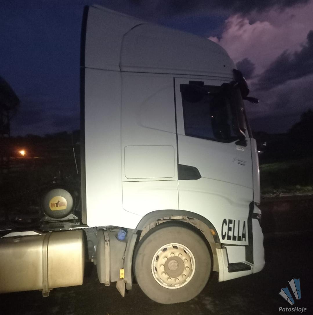 Segundo o condutor, seguia sentido Patos de Minas a Lagoa Formosa com a pista molhada devido à chuva, quando acionou o sistema de freios dos veículos, o engate do semirreboque onde o dolly é engatado quebrou, ocasionando o desacoplamento do conjunto, e consequentemente o tombamento do dolly e o último semirreboque da combinação veicular de cargas.