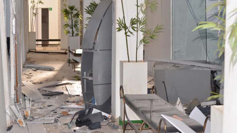 Com o uso de explosivos, os assaltantes conseguiram abrir o caixa eletrônico e retiraram as gavetas que guardavam o dinheiro. A explosão causou grandes danos no local. Parte do forro veio abaixo. Em questão de minutos, os cinco assaltantes foram embora levando o dinheiro e deixando para trás muita sujeira.