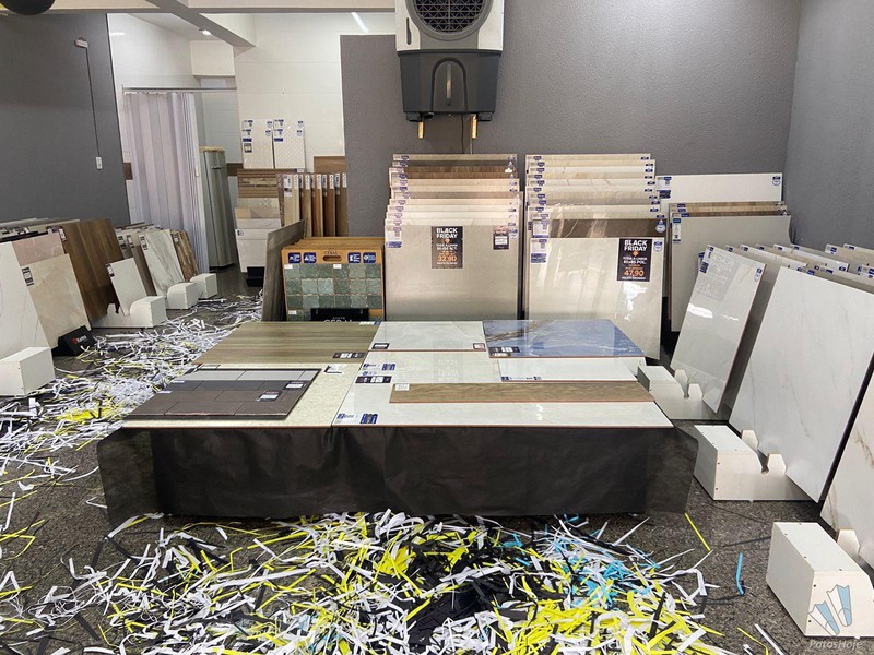 Logo na entrada da loja, dois expositores chamam a atenção de quem busca economia. No primeiro deles, há produtos gresalatos, com peças 100% resistentes à mancha d’água e retificadas, com preços a partir de R$ 20,90, além de diversos modelos já disponíveis para pronta entrega. Ao lado, vários tipos de porcelanato estão sendo oferecidos a partir de R$ 40,90, também com grande variedade em estoque.