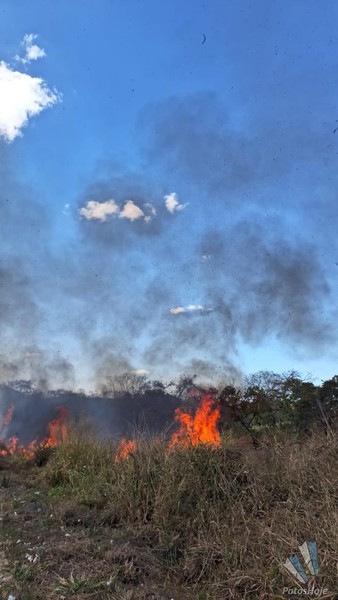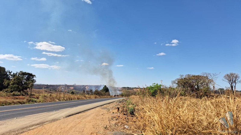 A primeira chamada foi registrada às 11h00 na Rodovia Natalino Fernandes Caixeta, conhecida como Estrada da Serrinha. O fogo não estava às margens da pista, mas sim em uma palhada de milho já colhida dentro de uma propriedade rural. Ao chegar ao local, a Guarnição de Bombeiros (GU BM) encontrou seis trabalhadores da fazenda, que já haviam iniciado os trabalhos de contenção com um trator equipado com grade de arado e um caminhão-pipa.
