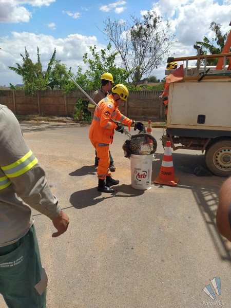 O Corpo de Bombeiros resgatou, nesta segunda-feira (27), um ouriço que subiu em um poste de iluminação pública, mas não conseguiu descer, em Lagoa Formosa. Ele teria subido no local para fugir de um cachorro, que o perseguia. Após o resgate, o ouriço foi solto no habitat natural.