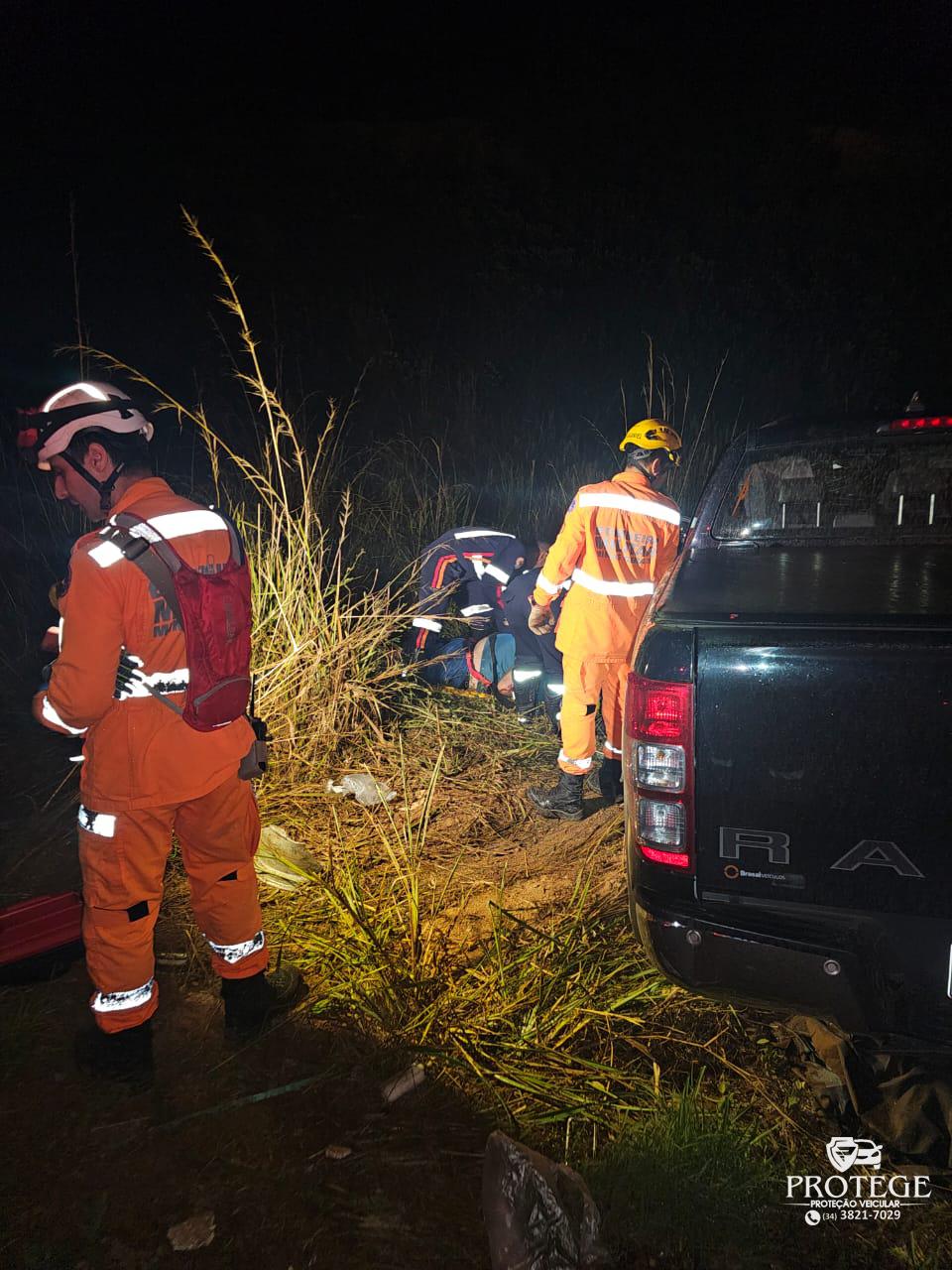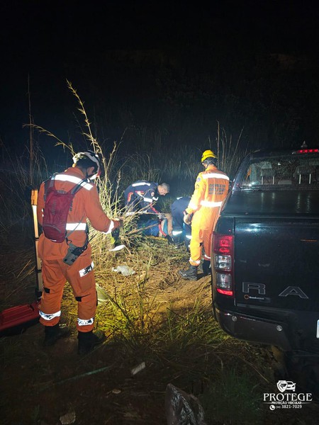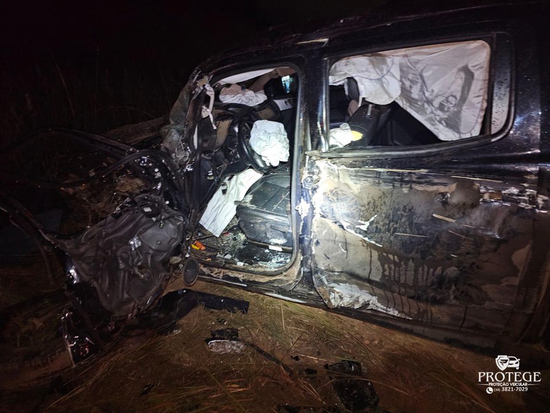 Após ser retirado das ferragens, o motorista da caminhonete foi colocado em uma ambulância do Samu e levado para o Hospital Regional.
