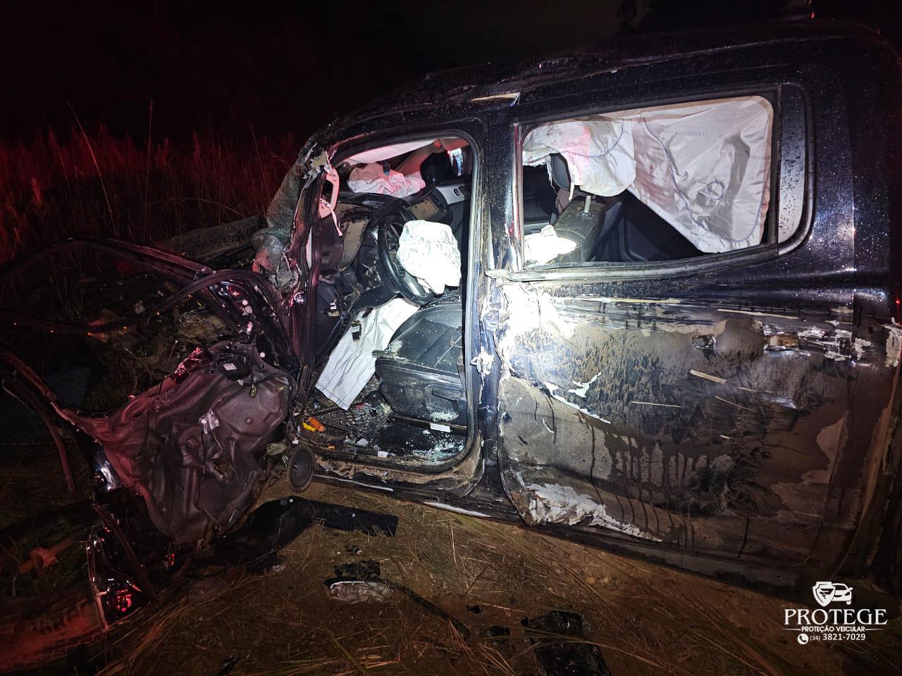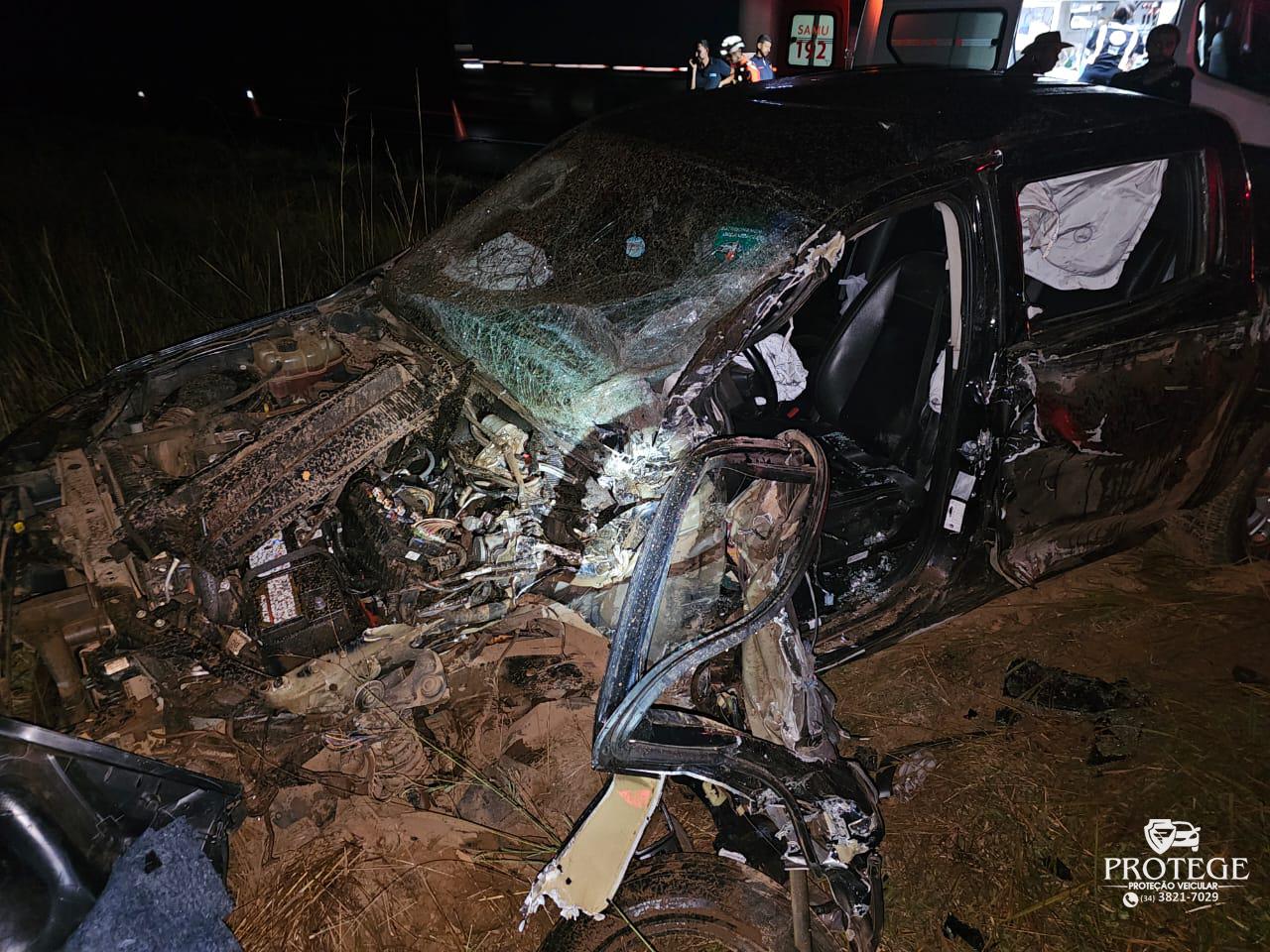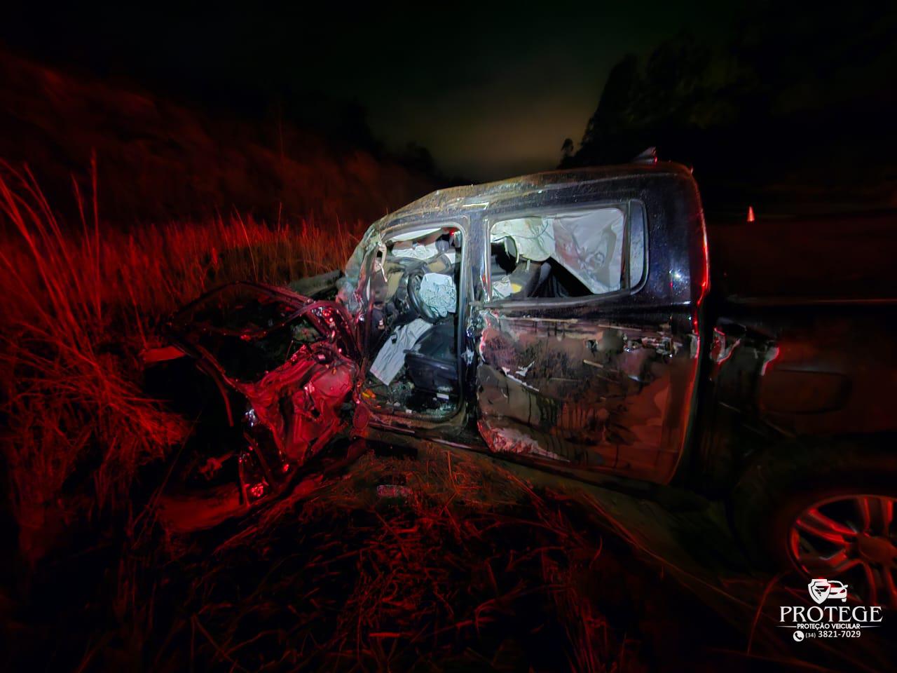 O acidente foi na BR 365, próximo ao chamado Trevo de Santana, no município de Patos de Minas. Segundo informações do Corpo de Bombeiros, o motorista de uma carreta perdeu o controle, o veículo fez o chamado "L" e acabou batendo na caminhonete.