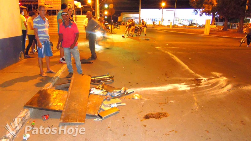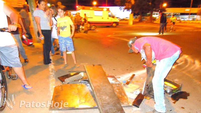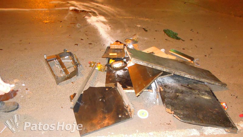 O motociclista, que seguia em direção ao Trevo da Pipoca, não conseguiu evitar o acidente. A batida foi tão forte que arrancou a caixa de madeira usada pelo caminhoneiro para guardar os materiais de cozinha. O capacete do condutor deixou marcas e afundou o baú do caminhão. A frente da motocicleta ficou destruída.