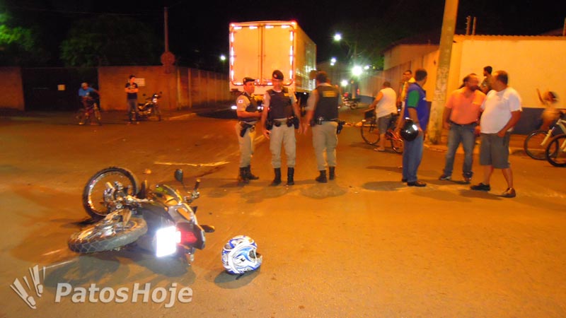 Um grave acidente na noite dessa terça-feira (30) deixou um motociclista gravemente ferido e interrompeu o trânsito por cerca de uma hora em uma das principais ruas de Patos de Minas. A batida foi provocada pelo condutor de um caminhão da cidade de Florianópolis que avançou a parada obrigatória.