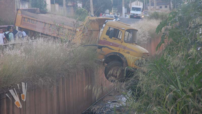 O caminhão continuou desgovernado e só parou quando derrubou a grade de proteção do córrego. As duas rodas dianteiras do caminhão ficaram no ar. Outro veículo da empresa foi encaminhado para o local para evitar que o caminhão caísse no córrego. Uma das pistas da avenida foi interditada para o trabalho de remoção.