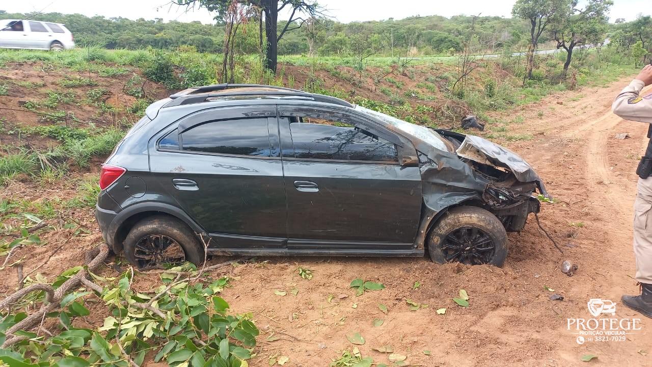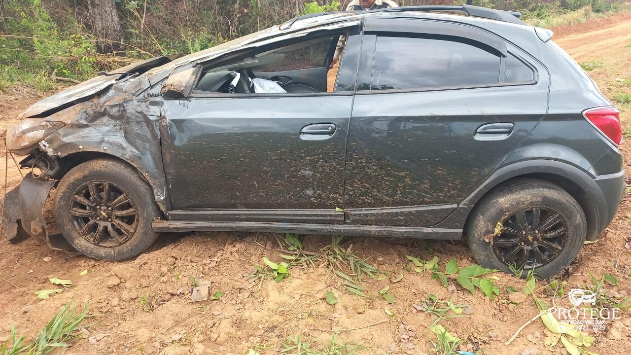 De acordo com informações da Polícia Militar Rodoviária, por volta das 10h40, após serem acionados, os policiais compareceram ao local e depararam com o GM/Ônix danificado na faixa de domínio, fora da pista de rolamento.