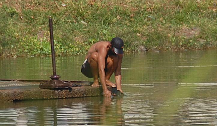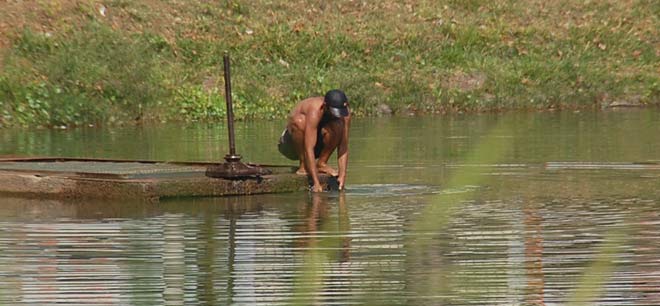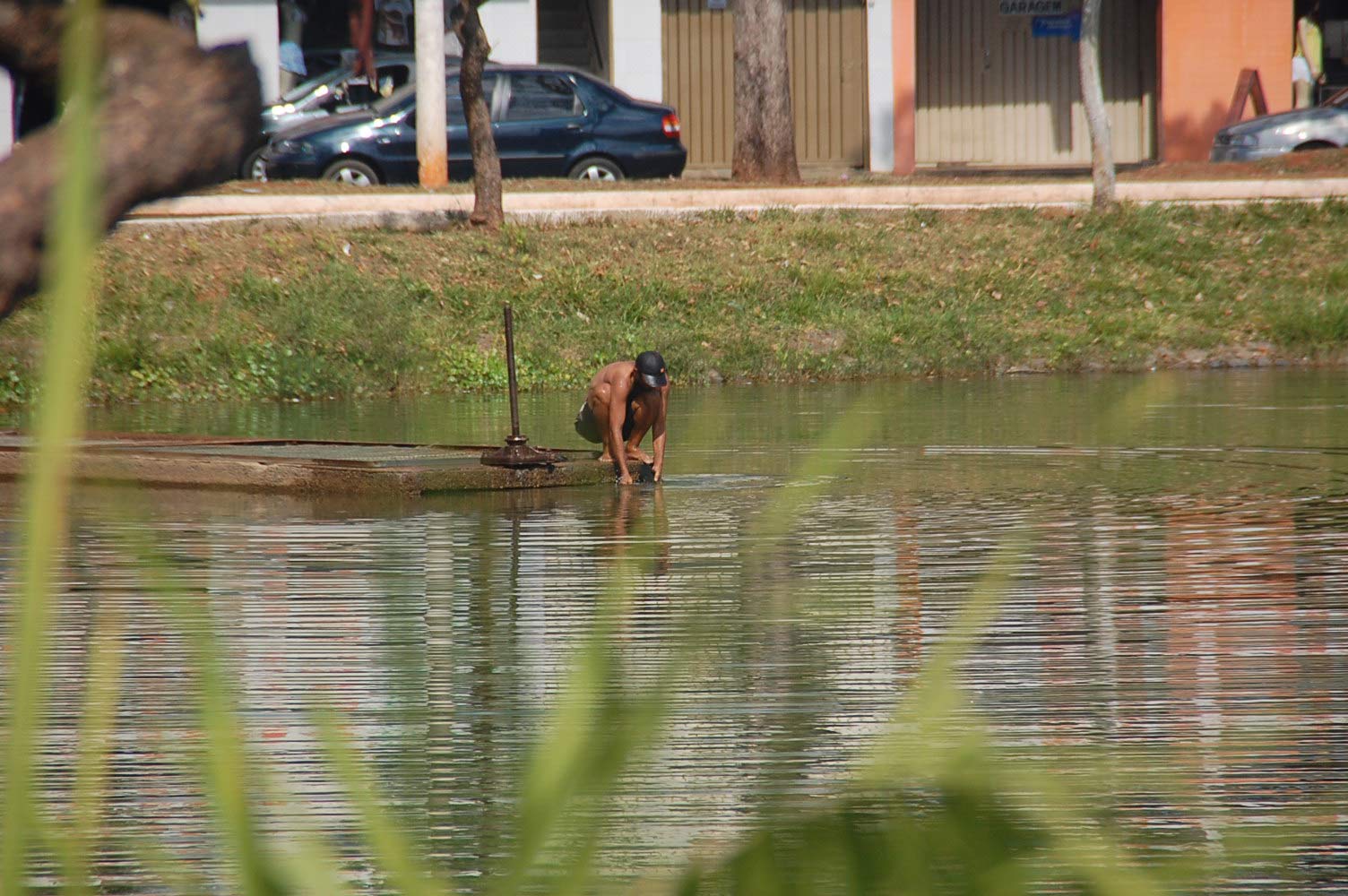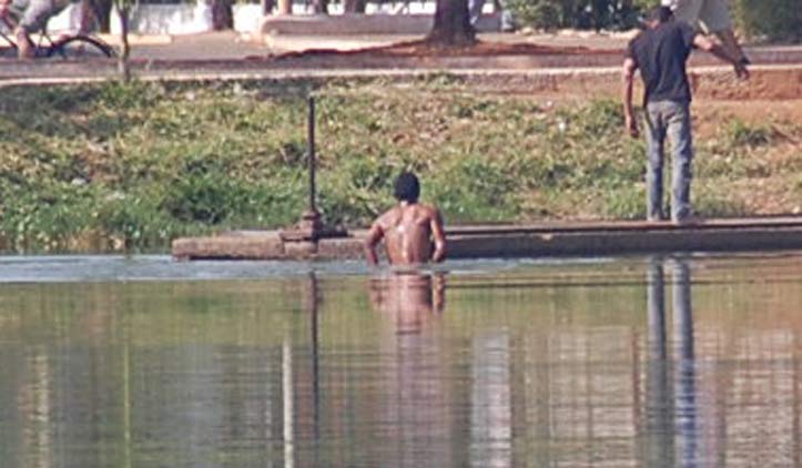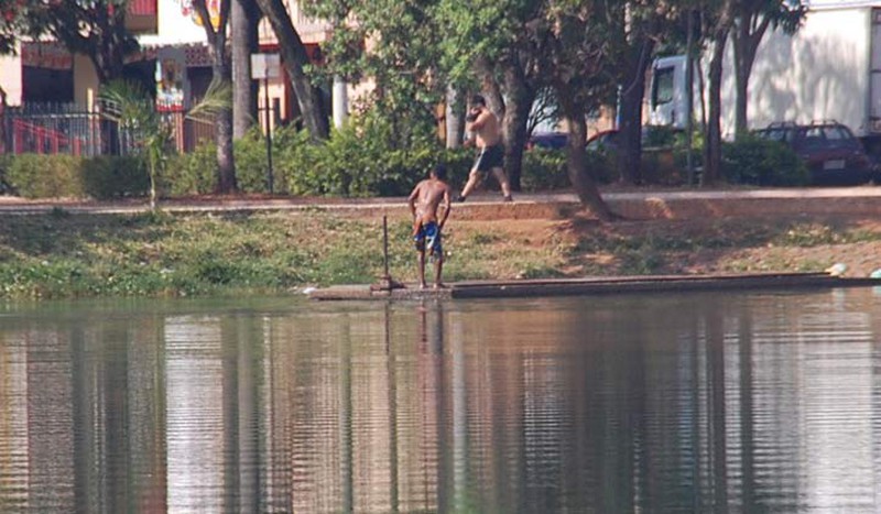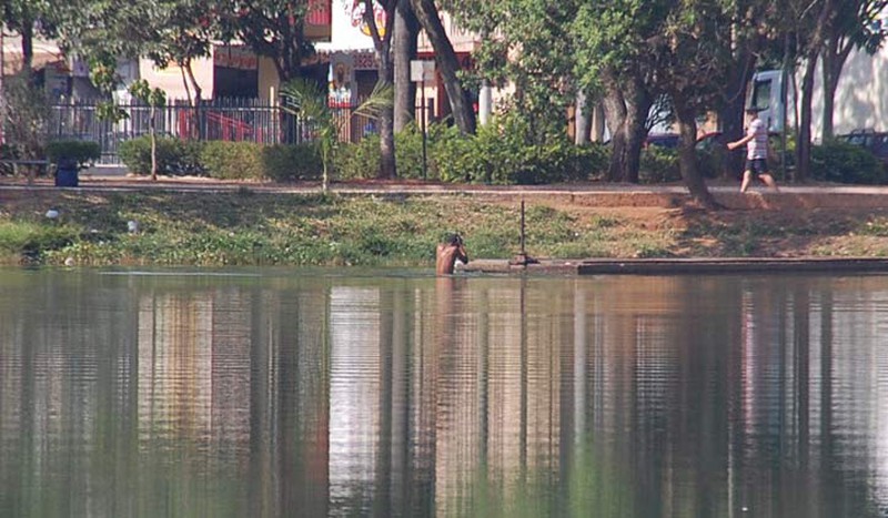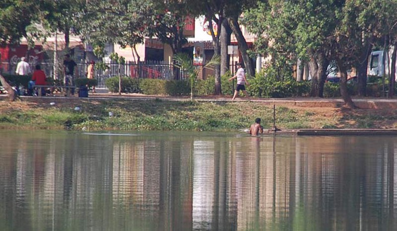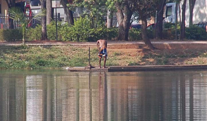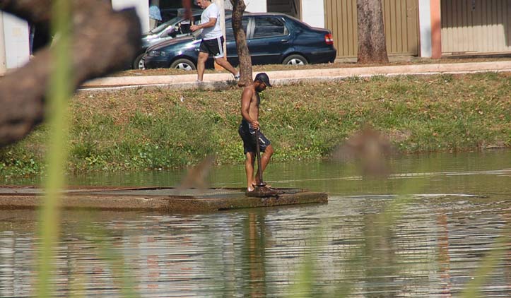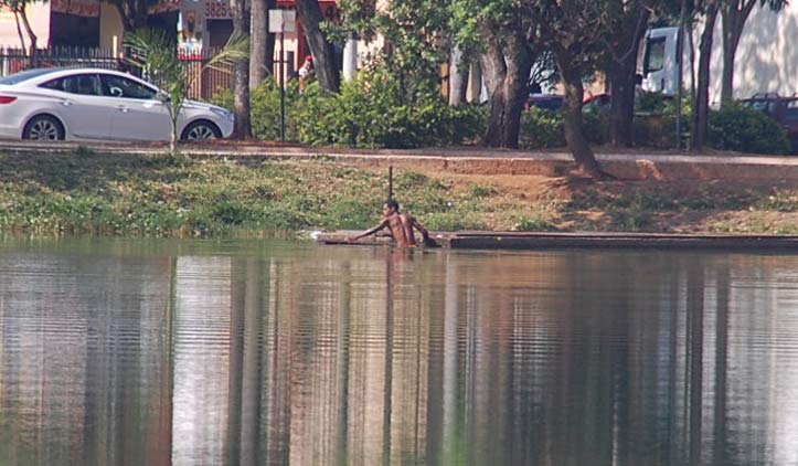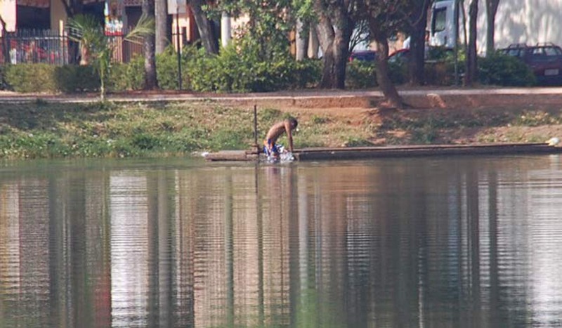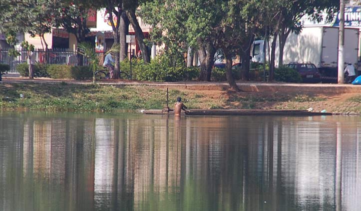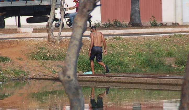 Alguns andarilhos foram flagrados na manhã desta sexta-feira (10) não se divertindo nas águas poluídas da Lagoa Grande, mas tomando banho. Pessoas que passavam pelo local ficaram impressionadas de vê-los se esfregando na lagoa, pensando que fosse permitido.
