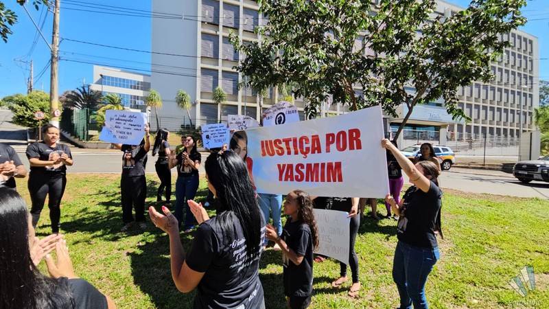 A mobilização chama a atenção de quem passa pelo local. As faixas erguidas pelos manifestantes reforçam o pedido para que a morte de Yasmin não fique impune. O grupo permanece concentrado desde as primeiras horas da manhã, acompanhando a movimentação no fórum e aguardando o início do julgamento.