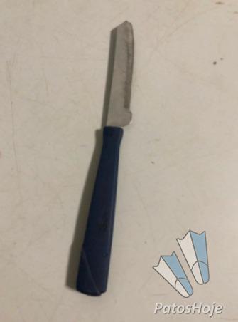 Ao perceber a aproximação da viatura, o suspeito fugiu em corrida e tentou se esconder na entrada de outro imóvel. Foi rapidamente localizado, abordado e identificado como sendo um indivíduo com várias passagens policiais. Em sua posse, os policiais encontraram uma faca com lâmina de aproximadamente 8 cm.