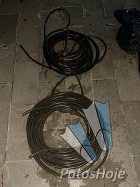 A equipe realizou a abordagem no cruzamento da Avenida Getúlio Vargas com a Prefeito Camundinho. Pouco antes de ser contido, o suspeito dispensou fios enrolados dentro da lixeira de um prédio próximo. O material foi recolhido: tratava-se de cerca de cinco metros de cabo paralelo branco e dois metros de cabo flexível preto.