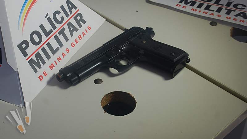Segundo os policiais, o jovem relatou que eles teriam “mexido com a mulher dele”. A réplica que se parece muito com uma pistola 9mm de verdade foi apreenida.