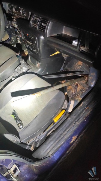 No interior do veículo foram encontradas três facas sujas de sangue, um machado, lanternas, celulares e sacos preparados para carregar carne. Todo o material foi apreendido e levado para a Delegacia de Plantão, juntamente com os dois suspeitos presos. O carro, um GM Vectra azul, também foi apreendido.