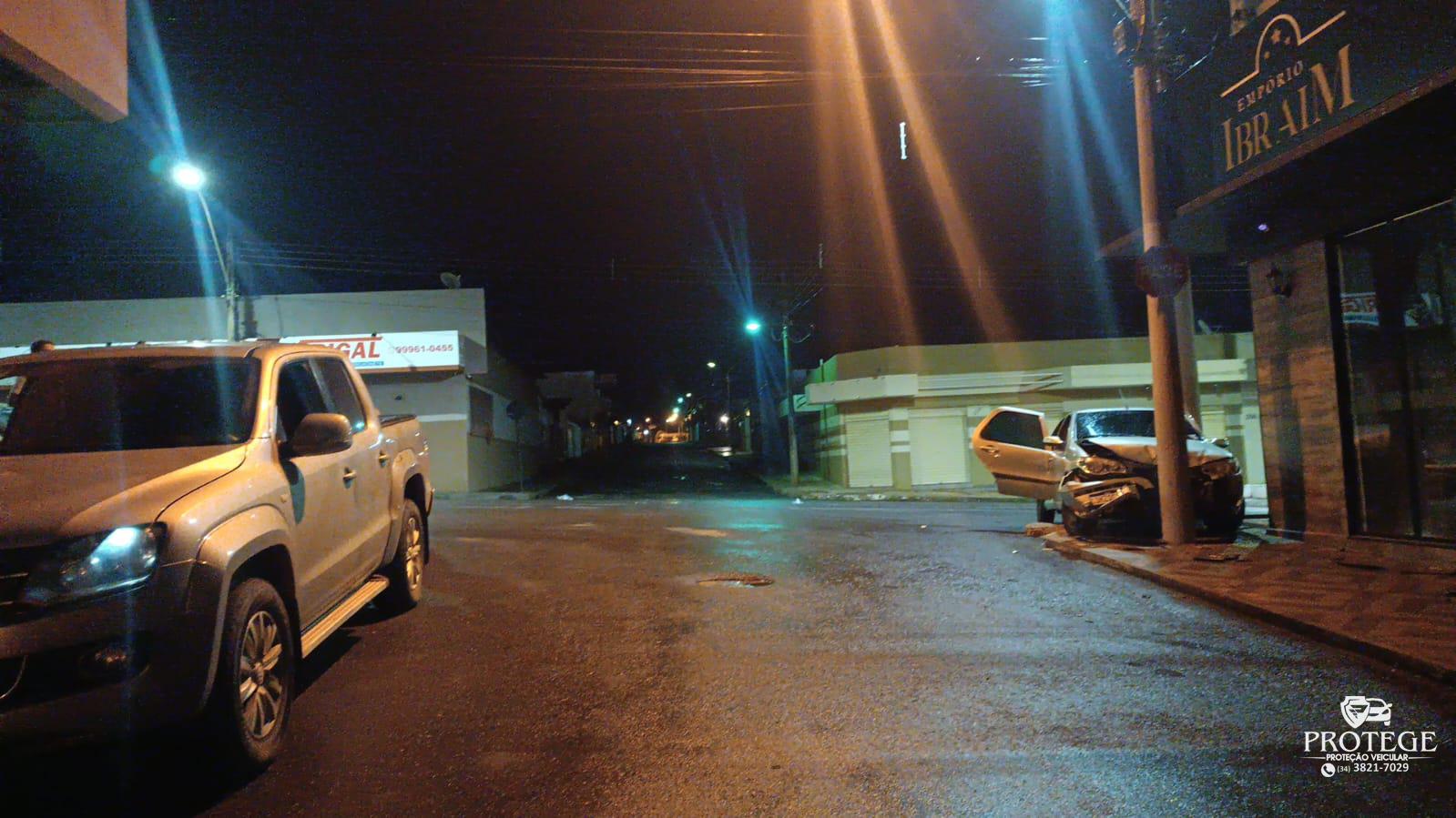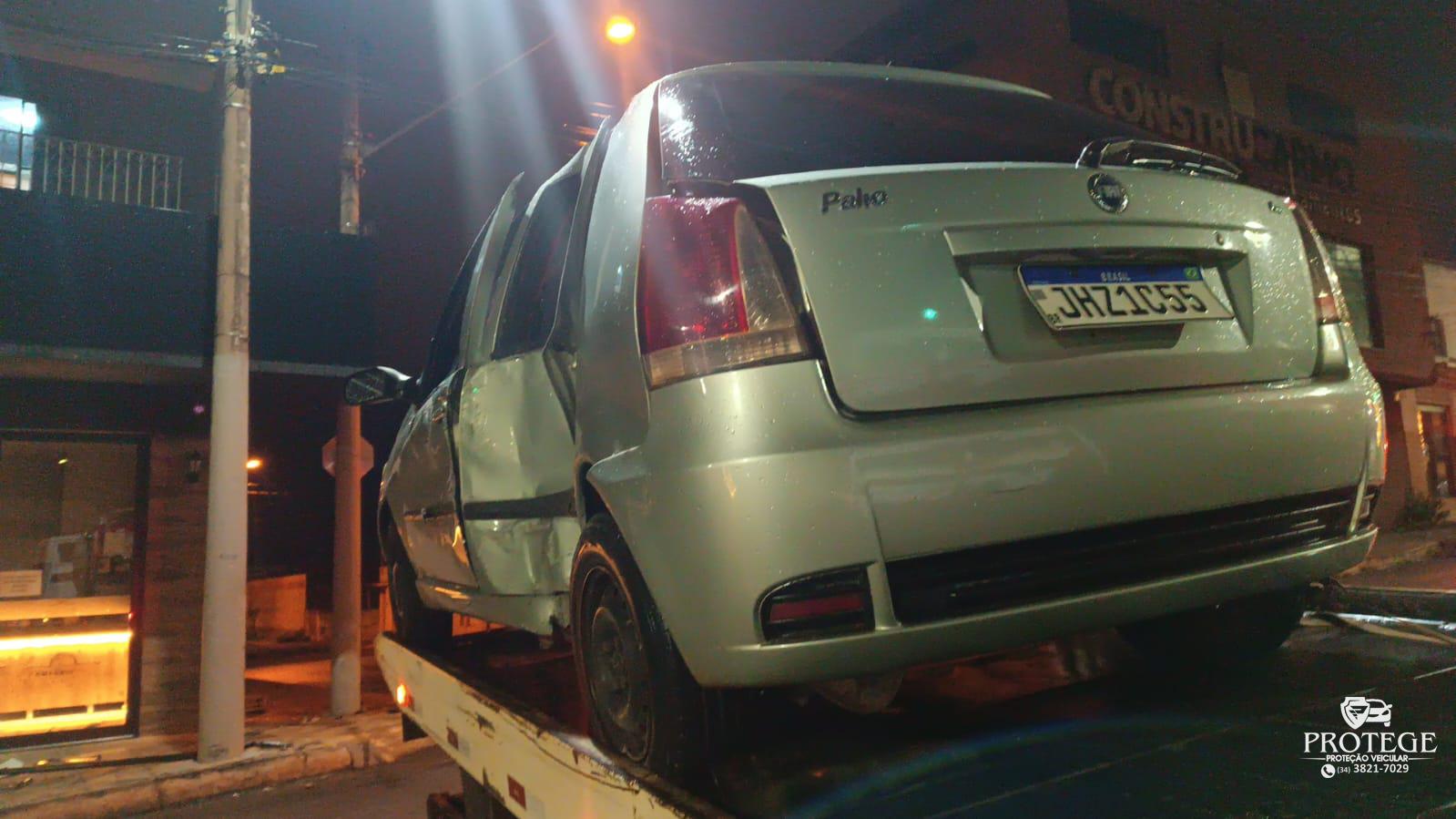 Um grave acidente foi registrado na madrugada desta quinta-feira (11) no cruzamento da Avenida João Batista da Silva com a Rua São Vicente, no bairro JK, em Carmo do Paranaíba. Segundo a Polícia Militar, o veículo, um Fiat Pálio, bateu violentamente em dois postes após o condutor, um jovem de 18 anos, realizar uma manobra conhecida como “cavalo de pau” em meio à pista molhada.