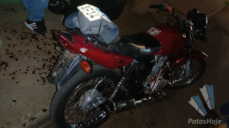 A motocicleta, uma Honda CG 150 Titan KS, foi apreendida e removida pelo guincho. Durante a vistoria, foram constatadas irregularidades como escapamento alterado – que emitia ruído excessivo – e a ausência do retrovisor. Foram lavrados autos de infração por essas irregularidades.