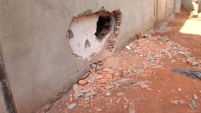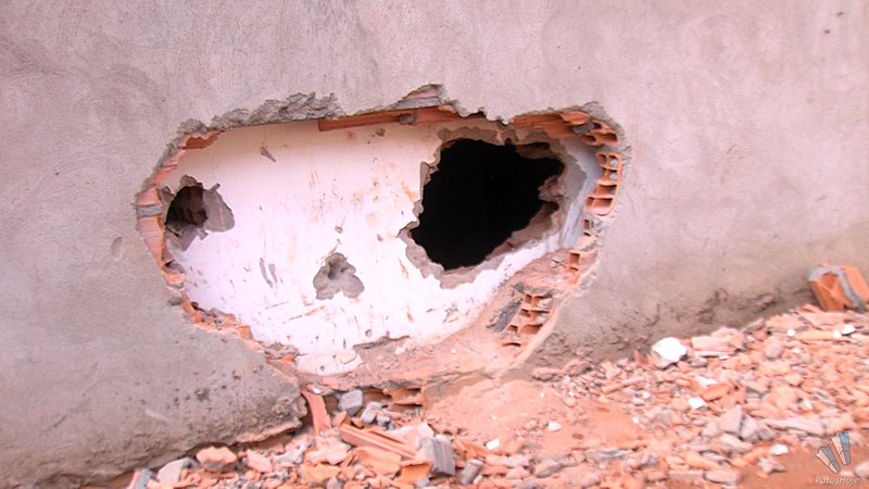 Além disso, eles ainda fizeram outro buraco para tentar acessar o cofre do banco, mas sem sucesso. Em conversa com os militares, o funcionário do banco relatou que toda a agência possui câmeras de vigilância e que as imagens seriam entregues à polícia assim que possível. Os militares constataram que os criminosos arrombaram dois cadeados da obra ao lado do banco para ter acesso à agência.