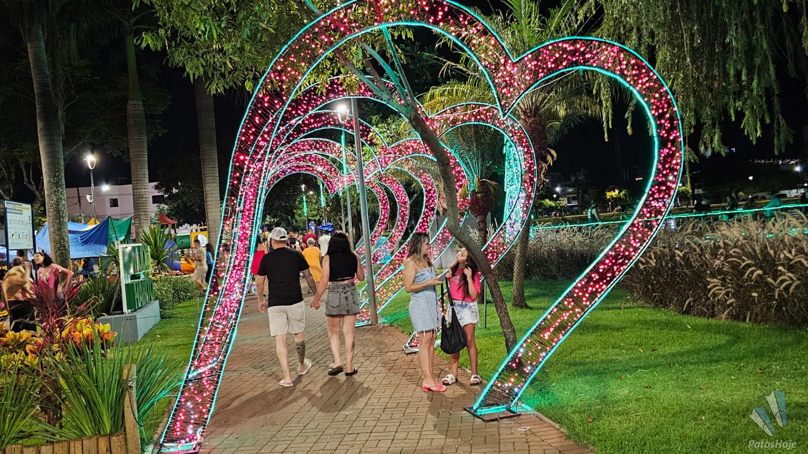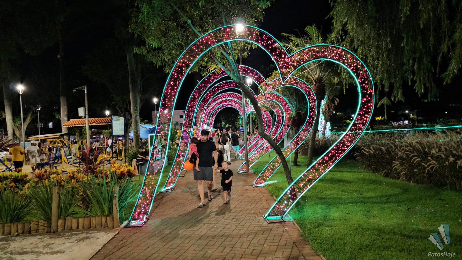 A decoração natalina chamou a atenção pela beleza e pelo cuidado nos detalhes. O conjunto de corações feito de luzes vermelhas é o lugar ideal para tirar uma bela fotografia.