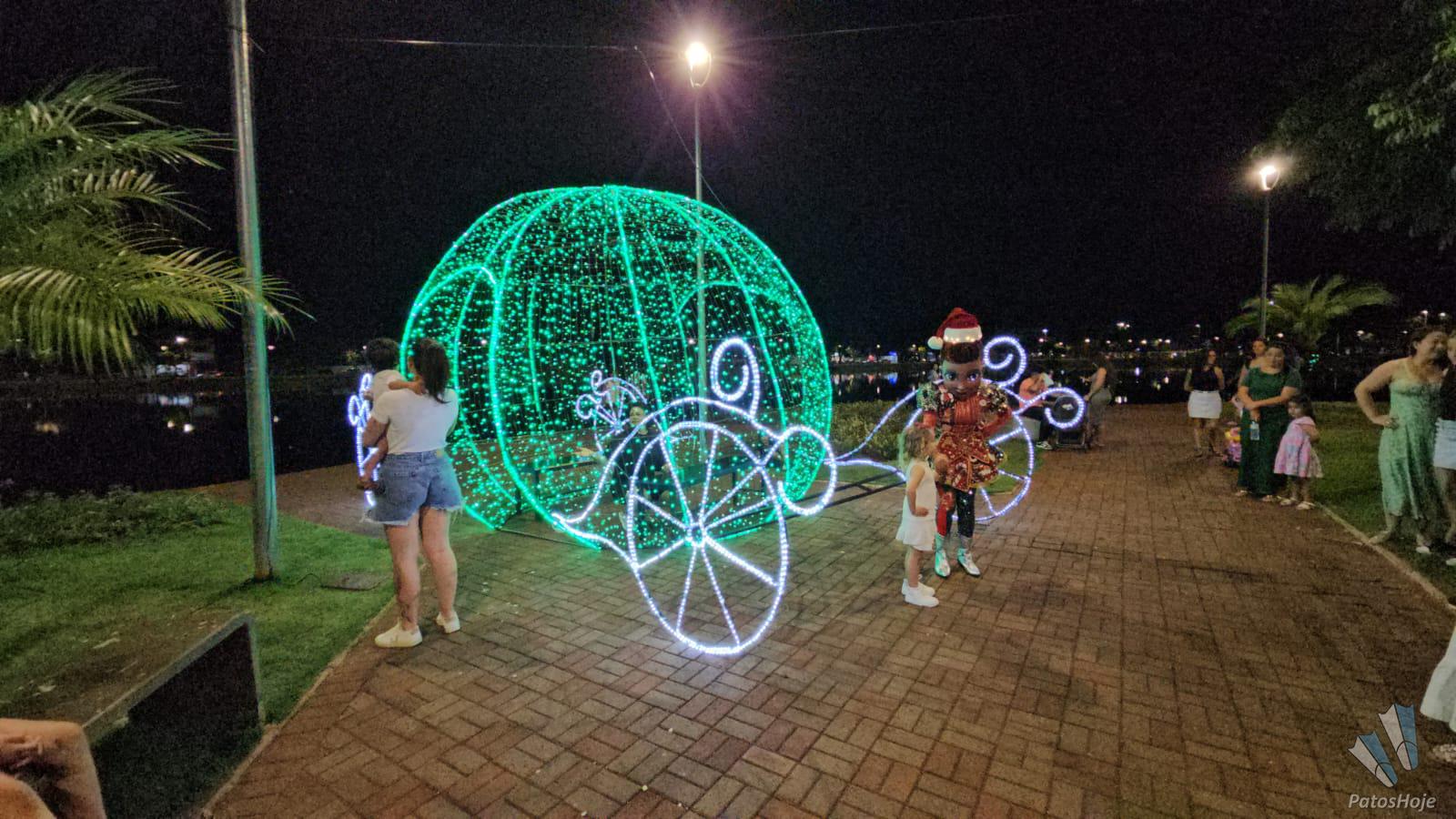 Com o acendimento das luzes, a Orla da Lagoa Grande se transforma em um ponto de encontro para as famílias e em um dos cenários mais procurados para viver o clima do Natal em Patos de Minas.