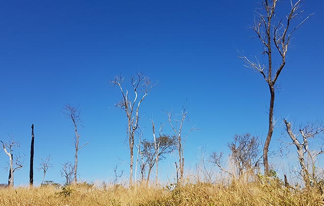 O mato passou a tomar conta do lugar das árvores. Sem a construção do aceiro, tão reivindicado pelos ambientalistas e moradores, o risco de novas queimadas é grande. Pra piorar a situação, algumas pessoas estão usando a Mata do Catingueiro para jogar lixo e restos de materiais de construção.