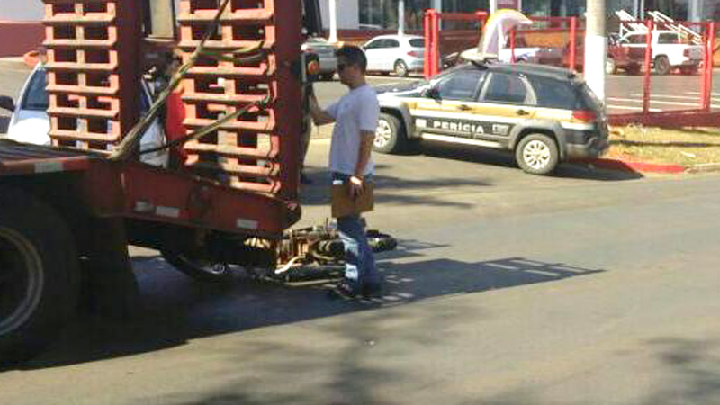 O grave acidente aconteceu no início da tarde desta segunda-feira (22) na avenida JK, próximo a uma empresa de tratores. O motociclista não percebeu o caminhão se preparando para fazer uma manobra na avenida e acabou batendo. Renato Alex Nunes, 39 anos, foi levado para o Hospital Regional com um forte sangramento na cabeça.