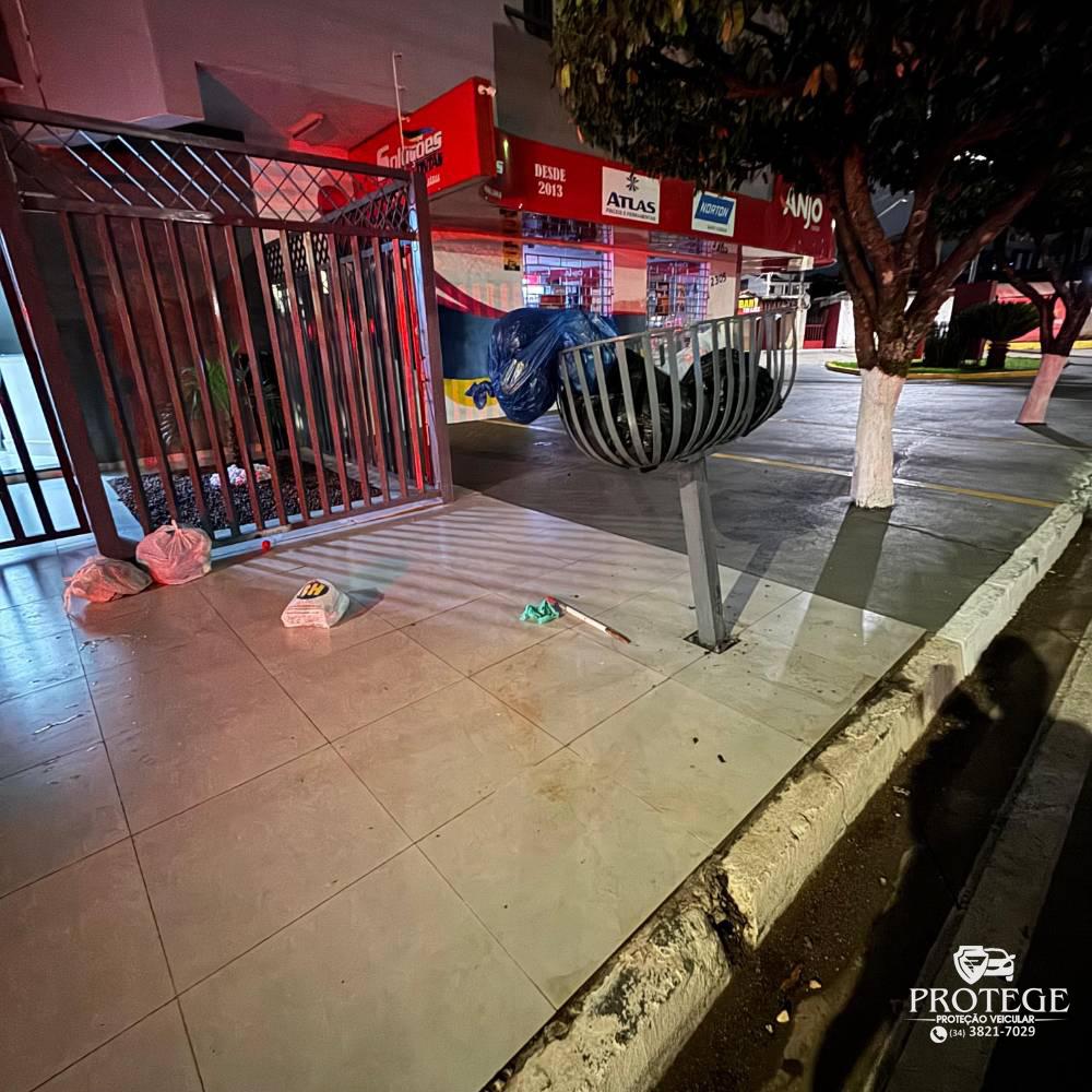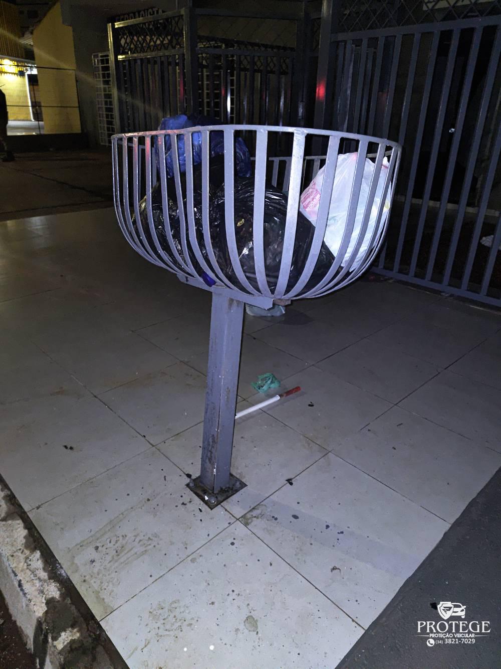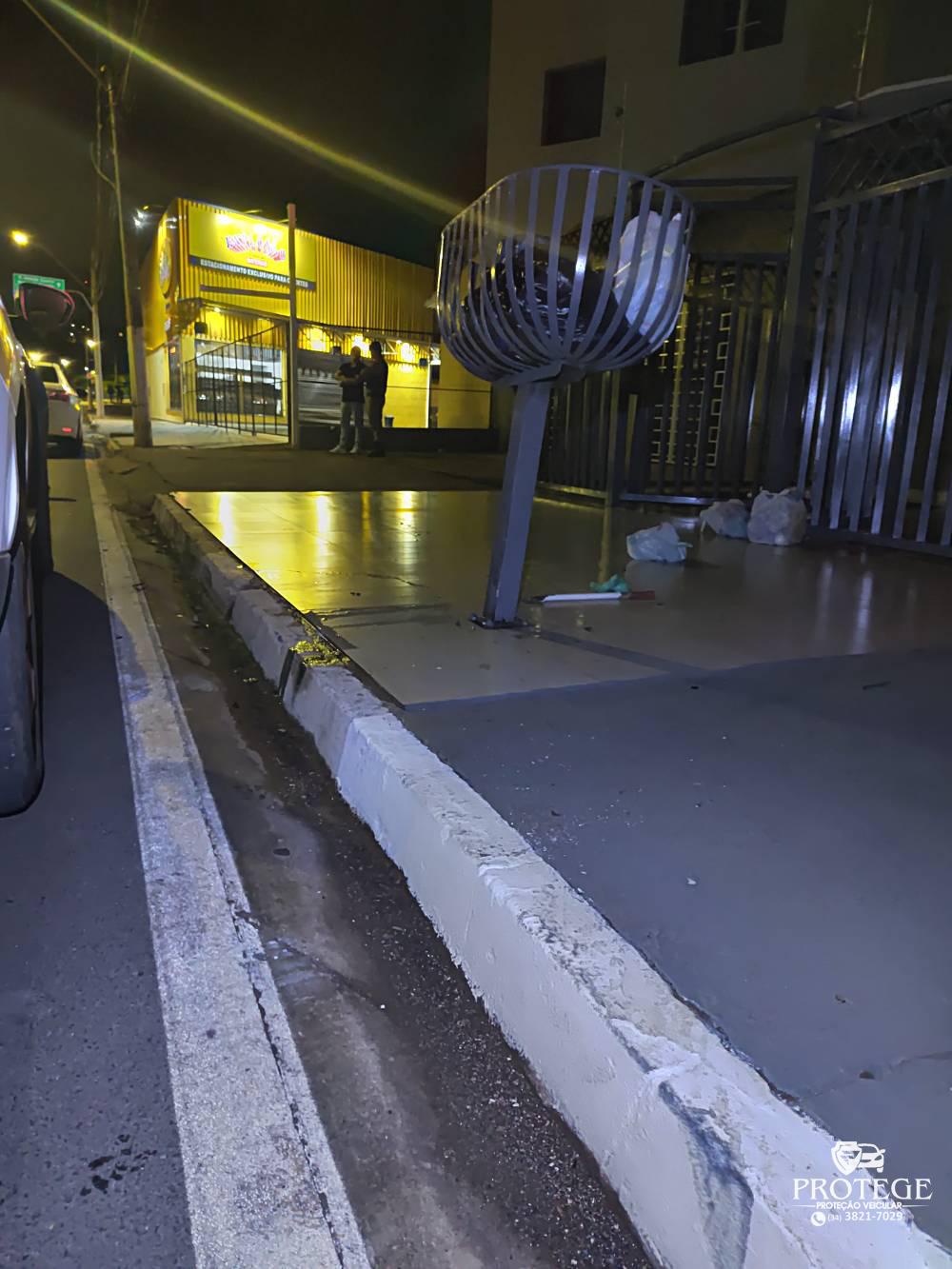 O condutor foi abordado pelos policiais. No relato, ele admitiu que "perdeu o controle direcional do veículo" e colidiu contra uma lixeira pública, comprometendo-se a pagar pelo conserto.