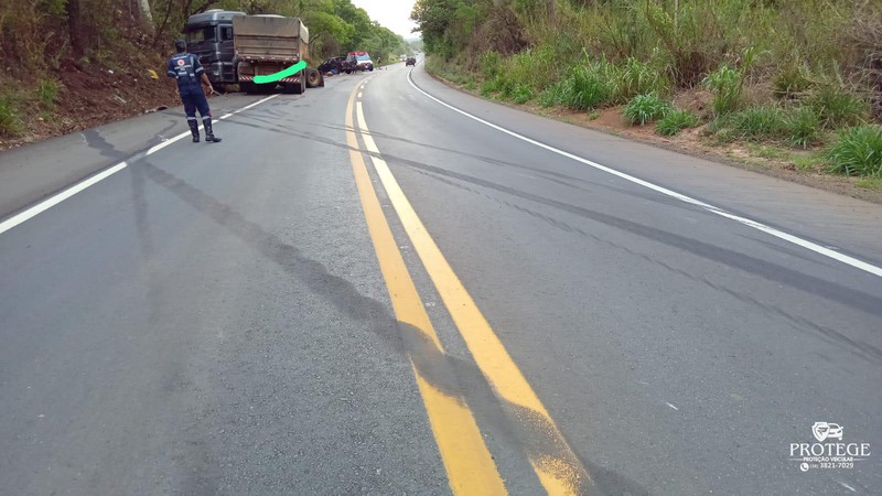 De acordo com informações da Polícia Militar Rodoviária, por volta das 5h00, deslocou e atendeu o acidente de trânsito sem vítima. O condutor R.L.S.S de 40 anos idade, conduzia veículo Mercedes Bens, caminhão caçamba e que estava transitando em sentido Patos Minas a Presidente Olegário, momento que ao realizar a curva colidiu na traseira da caminhonete Mitsubishi/Triton que seguia no mesmo sentido. Ambos condutores perderam controle direcional veicular e que a caminhonete veio a capotar, permanecendo na pista.