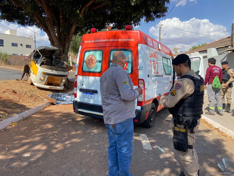 Patos de Minas registrou mais uma tragédia no trânsito. Nesta quinta-feira (18), o motorista de uma Kombi acabou falecendo após o veículo bater violentamente contra uma árvore. Uma passageira também ficou ferida e precisou ser socorrida.