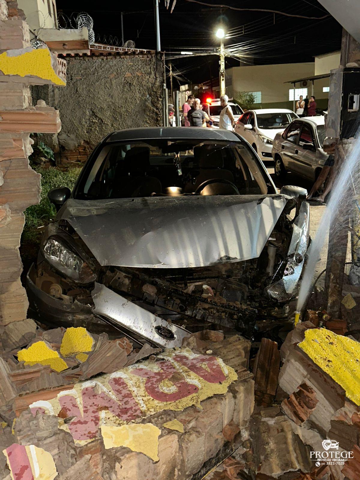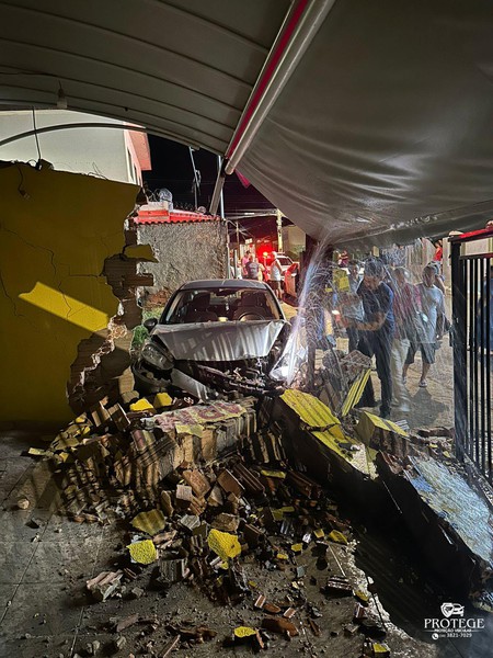 Um acidente de trânsito deixou danos significativos em um imóvel na noite deste domingo (30) na Rua Alzino Martelo, no bairro Nova Floresta, em Patos de Minas. Um motorista de 56 anos perdeu o controle da direção após sofrer um mal súbito e acabou atingindo um carro estacionado, derrubando uma placa de ponto de ônibus e batendo violentamente contra o muro de um comércio.
