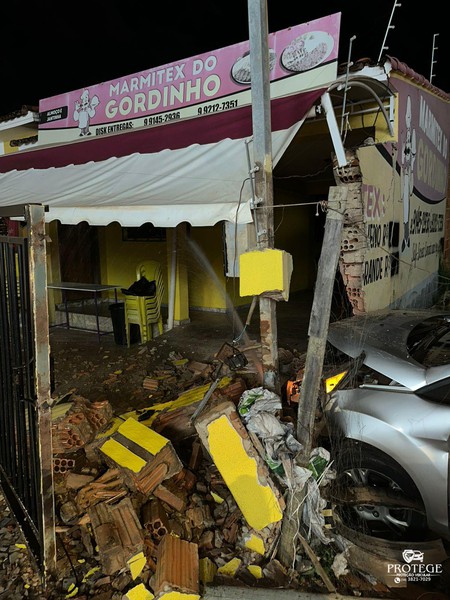 Desorientado, o motorista subiu na calçada e bateu na traseira de um veículo estacionado. Em seguida, atingiu uma placa de parada de ônibus, que ficou completamente destruída. O veículo só parou após bater contra o muro do estabelecimento, causando grandes danos à estrutura, ao portão, à cerca elétrica, ao padrão de energia e cavalete de água, que chegou a ser rompido e provocar vazamento.