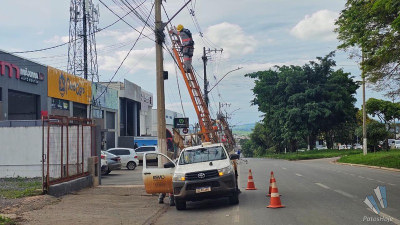 O acidente deixou a região sem energia elétrica e fez estragos. Estilhaços do poste arrancado atingiram uma caminhonete que estava estacionada.