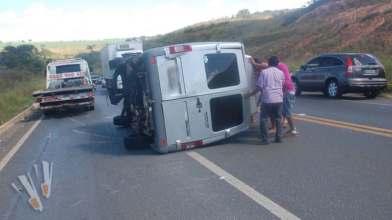 O feriado prolongado de Tiradentes começou com um grave acidente na BR365. Na manhã desta quinta-feira (21), uma van com 16 pessoas acabou tombando na pista após o pneu estourar. Várias pessoas ficaram feridas, mas por sorte, ninguém corre risco de vida. O estado dos pneus pode ter contribuído para o acidente.