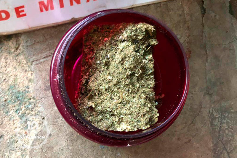 Ao ser procedida busca no interior da casa, os policiais encontraram, em um quarto, um tablete de substância parecido com maconha e, dentro de um outro pote tampado , na varanda, foram localizadas folhas da mesma planta. O autor foi preso em flagrante delito por cultivo de plantas utilizadas para preparação de drogas e conduzido para delegacia de polícia Civil.