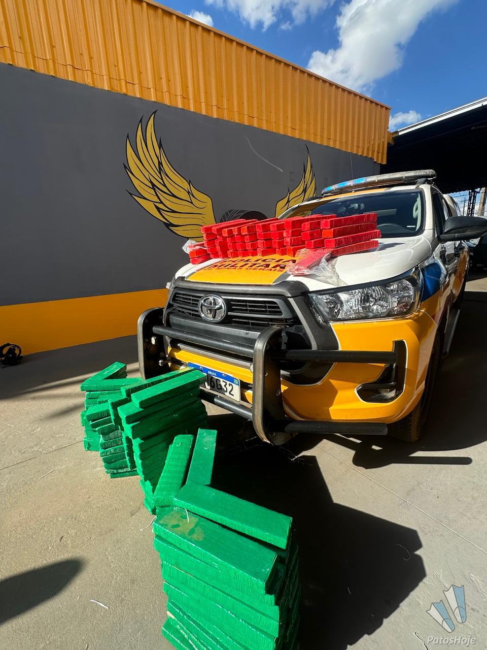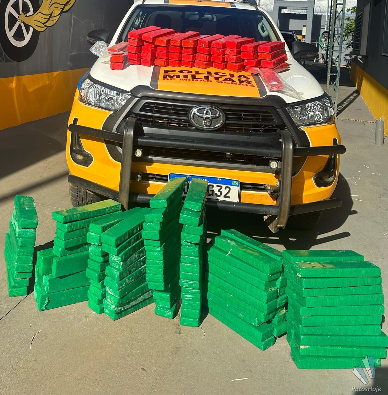 A Polícia Militar Rodoviária (PMRv) de Patos de Minas fez uma grande apreensão de drogas na tarde desta sexta-feira (26) na BR-352. Uma picape que transportava um carregamento de cerca de 200 quilos de maconha foi interceptada no quilômetro 165, em Patos de Minas. A droga foi avaliada em cerca de R$ 900 mil.