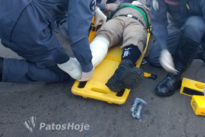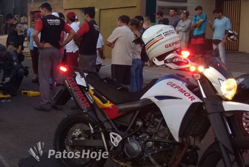 O acidente aconteceu no final da tarde desta sexta-feira (23) na Rua Major Gote, Centro de Patos de Minas. O policial do GEPMOR ficou ferido e precisou ser socorrido até o hospital. O local foi isolado para ser feito o registro da ocorrência. O motorista do carro tentava entrar na Major Gote e acabou provocando o acidente.