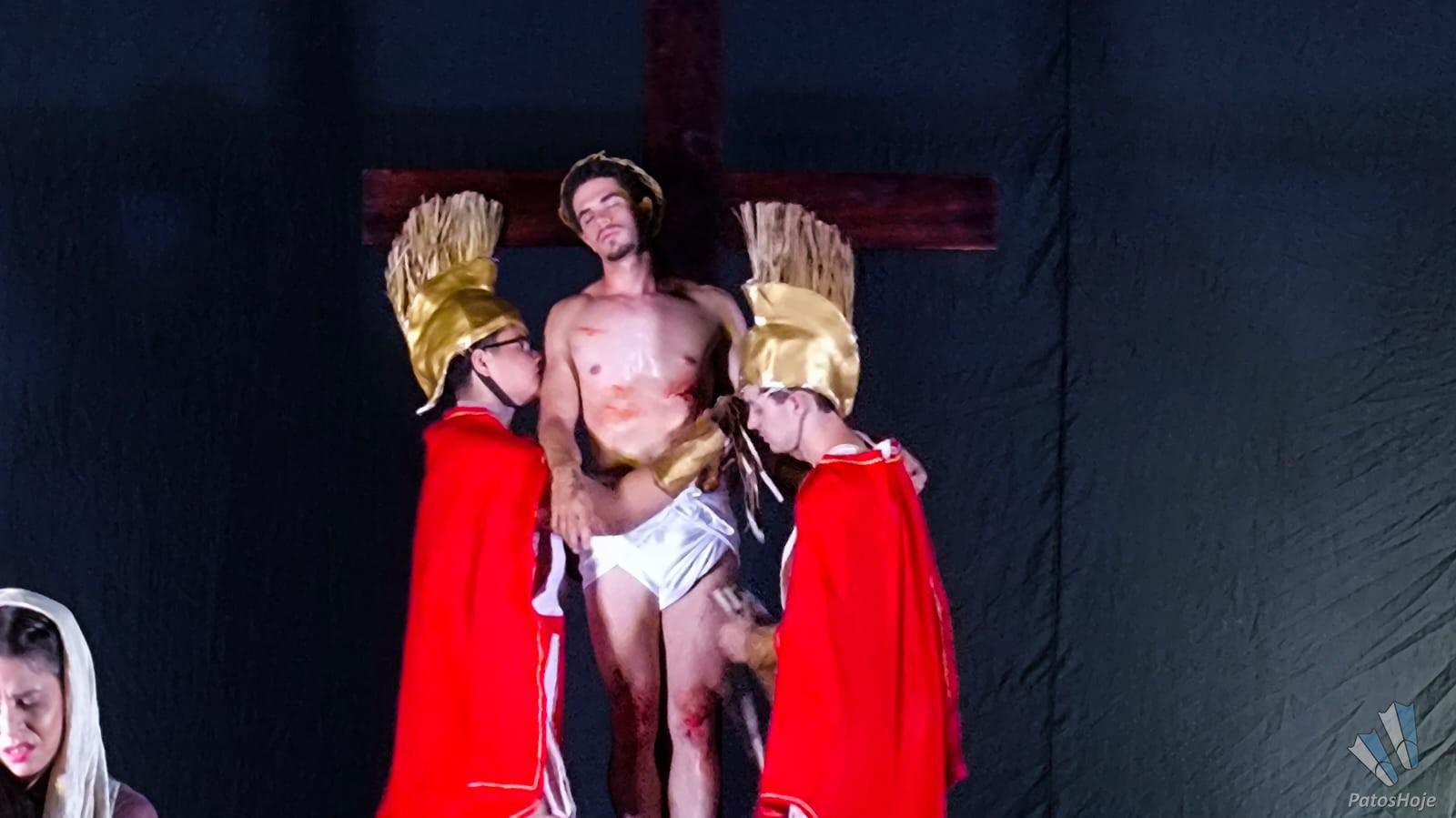 A violência dos soldados contra Jesus sempre chama a atenção e reacende a compaixão. O filho de Deus foi açoitado, chicoteado, cuspido e crucificado. De forma inocente, Ele foi morto pelos homens e, como exemplo, perdoou a todos porque “eles não sabem o que fazem”. A morte de Jesus Cristo é considerado entre os cristãos como o maior símbolo de amor. A plateia acompanhou emocionada cada detalhe.
