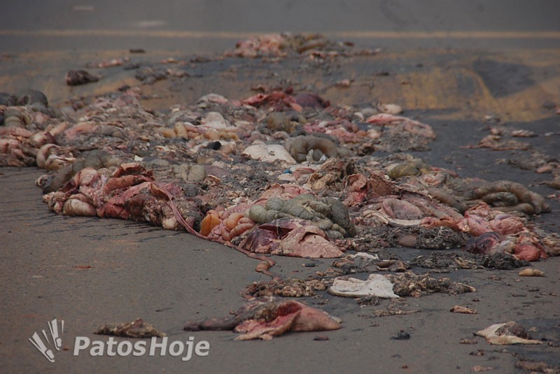 Quem passou pela principal entrada de Patos de Minas no final da manhã desta terça-feira (12) foi surpreendido por um mau cheiro e aspecto nada agradável de restos de animais mortos que cobriam parte do asfalto da Avenida JK. A sujeira foi motivo de reclamação de motoristas e comerciantes.