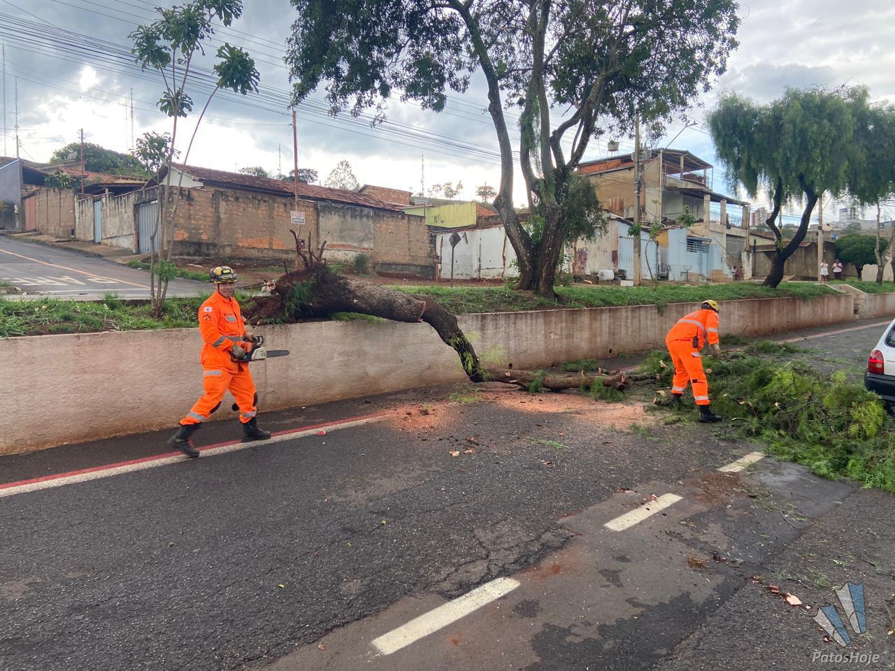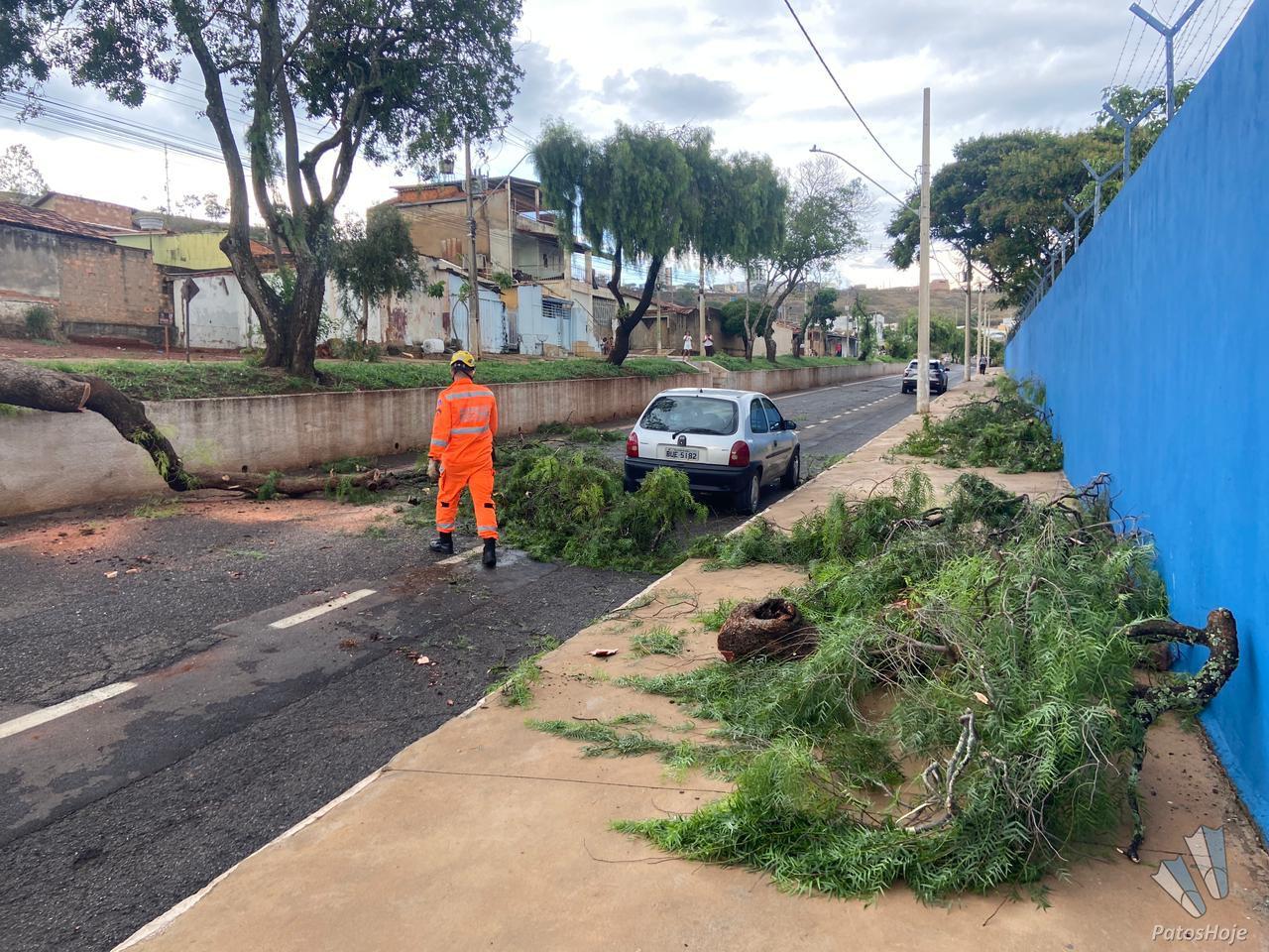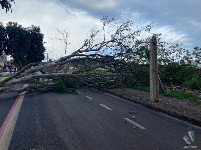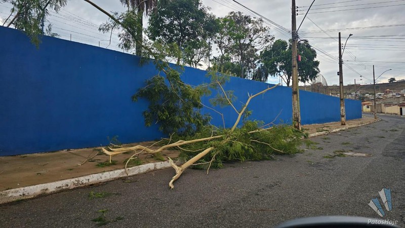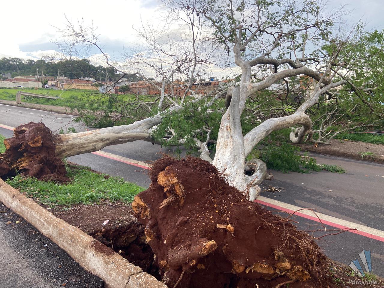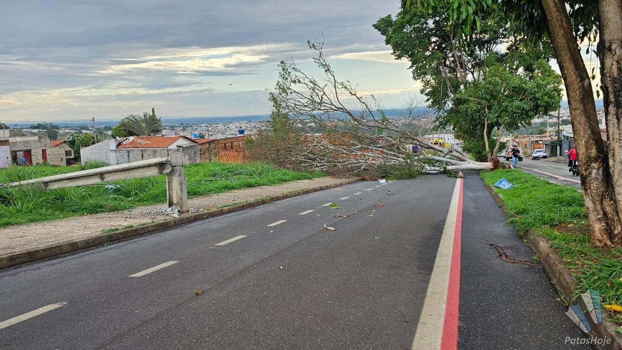 Um temporal atingiu parte da cidade de Patos de Minas na tarde desta terça-feira (18). A ventania arrancou telhas e derrubou árvores. Moradores compartilharam imagens dos estragos nas redes sociais.