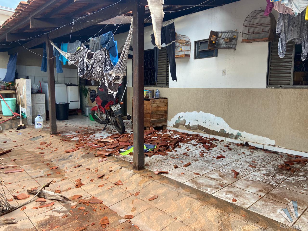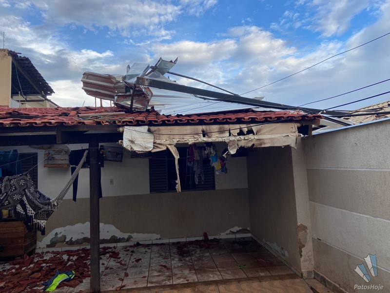 O cenário mais devastador foi no bairro Novo Horizonte. Na rua Ilidio Pereira, uma estrutura metálica caiu sobre duas residências. Parte da estrutura ficou presa na fiação dos postes. Em uma das casas, telhas ficaram destruídas. O morador contou para o Patos Hoje que tem um filho recém nascido e que, felizmente, não tinha ninguém na residência no momento do ocorrido. Casa ficaram sem energia.