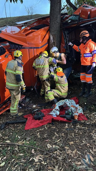 Duas pessoas estavam no veículo. Infelizmente, Gustavo Miranda morreu no local do acidente. A passageira, a namorada grávida de quatro meses, ficou ferida. Ela teve a perna esquerda presa às ferragens da cabine e precisou ser resgatada pelas equipes do Corpo de Bombeiros com o apoio da concessionária Nova 381.