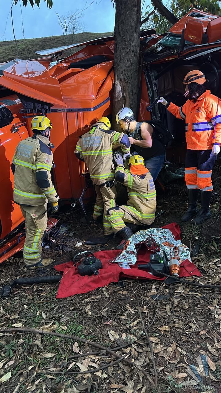 O acidente aconteceu por volta das 5h da manhã, nas proximidades do posto Graal, no bairro Tanquinho, no sentido Belo Horizonte. O caminhão, carregado com batata-doce, saiu da pista e caiu em uma ribanceira. De acordo com informações do Corpo de Bombeiros e da Polícia Rodoviária Federal (PRF), a visibilidade era precária devido à chuva intensa no momento da ocorrência.