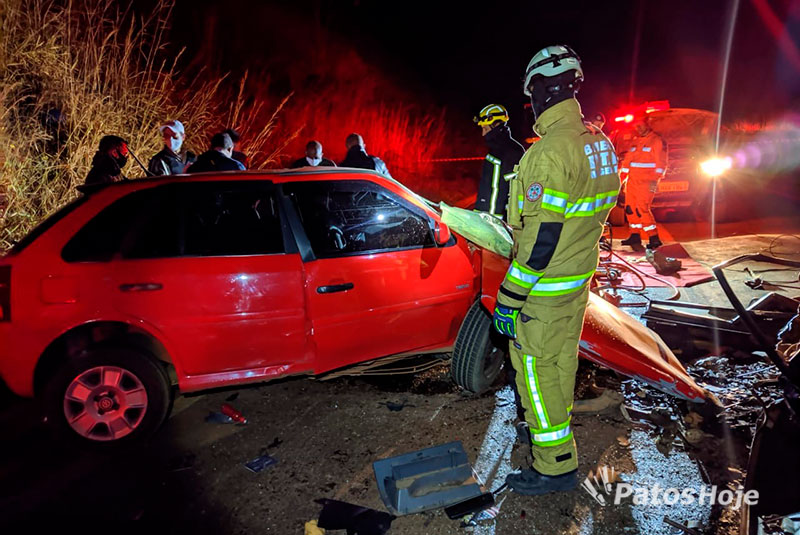 O Corpo de Bombeiros de Patos de Minas foi acionado para fazer o resgate das vítimas. No local, os militares encontraram os três ocupantes dos dois veículos presos às ferragens e já sem vida. No veículo prata estavam um homem identificado pelas iniciais A.F.S. de 56 anos e uma mulher identificada pelas iniciais V.N.F.