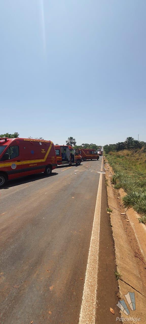 Um grave acidente na MGC 497 entre Uberlândia e a cidade de Prata deixou pelo menos cinco pessoas feridas neste sábado (23). As vítimas foram socorridas pelo Corpo de Bombeiros e levadas para unidades de saúde de Uberlândia. Só o motorista do caminhão não sofreu ferimentos.