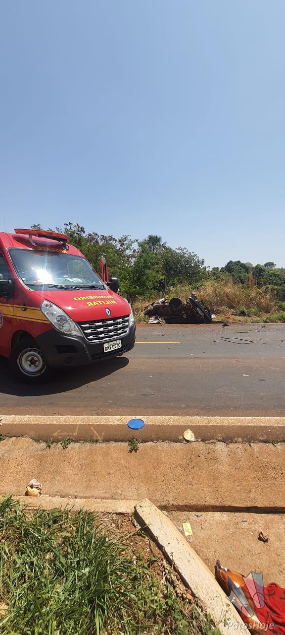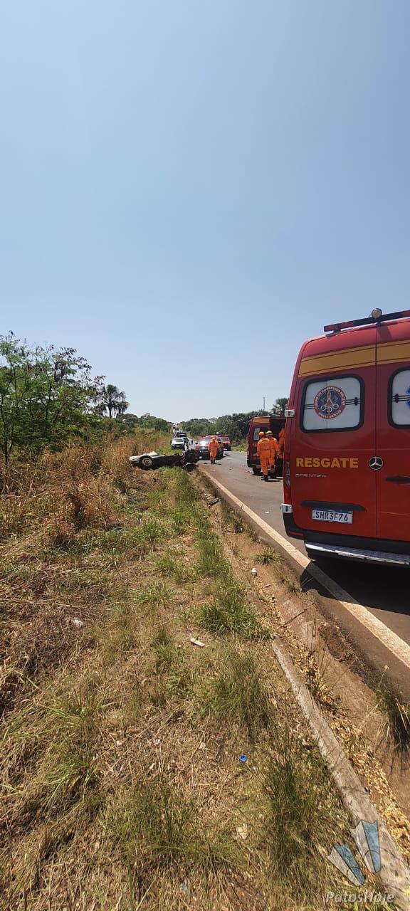 Conforme relato de testemunhas e do motorista do caminhão, o veículo de passeio, que seguia no sentido Prata, invadiu a pista contrária no momento em que um caminhão se aproximava no sentido Uberlândia. A batida foi frontal e o veículo de passeio capotou por diversas vezes. O caminhão perdeu o controle e tombou às margens da rodovia.