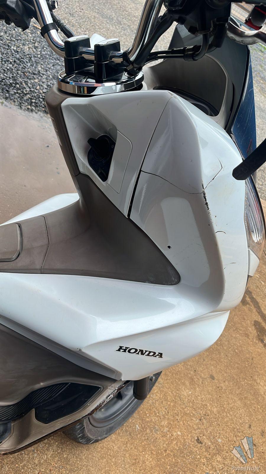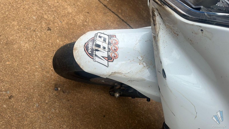Segundo a dona da motoneta, uma Honda PCX, o impacto causou diversos danos. Além das carenagens quebradas, a batida danificou as bengalas da suspensão e o retrovisor, o que elevou o prejuízo.